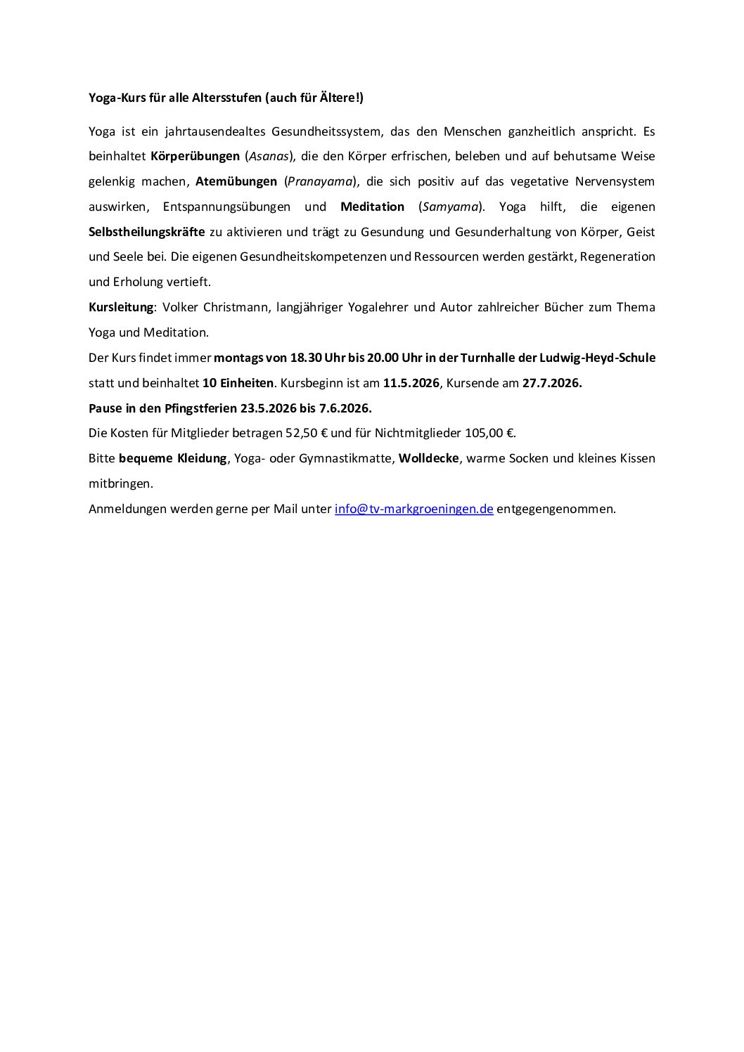 • Yoga-Kurs für alle Altersstufen (auch für Ältere!) 19. April 2026